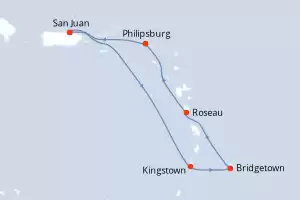 Itinerario : San Juan, Kingstown, Bridgetown, Roseau, Philipsburg, San Juan