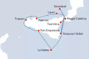 Itinerario : La Valetta, Port Empedocle, Trapani, Palermo, Lipari, Taormina, Reggio Calabria, Siracusa ( Sicilia), Stromboli, La Valetta