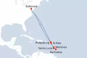 Itinerario : Baltimore, San Thomas, Philipsburg, St Kitts, Aruba, Willemstad(Curaçao), Grand Turk, Baltimore