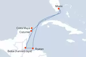 Itinerario : Miami, Belize (harvest caye), Roatan, Costa Maya, Cozumel, Miami