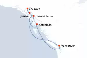 Itinerario : Vancouver, Dawes Glacier, Skagway, Juneau, Ketchikán, Vancouver