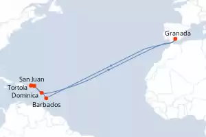 Itinerario : San Juan, San Thomas, Saint Martin (Antilles Néerlandaises), Antigua, Dominica, Barbados, San Juan, Saint Martin (Antilles Néerlandaises), Dominica, Grenada, Barbados, Tortola, San Juan