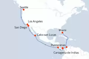 Itinerario : Seattle, Los Angeles, San Diego, Cabo san Lucas, Puntarenas, Canal panama (Enter), Canal de Panama, Colón - Panama, Cartagena de Indias, Miami, Georgetown Islas Caiman, Ocho Rios, Miami