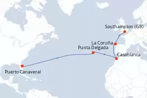 Itinerario : Puerto Canaveral, Punta Delgada, Casablanca, La Coruña, Southampton