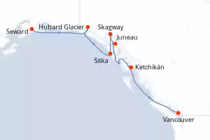 Itinerario : Seward, Hubard Glacier, Juneau, Skagway, Sitka, Ketchikán, Vancouver, Seward, Hubard Glacier, Juneau, Skagway, Sitka, Ketchikán, Vancouver