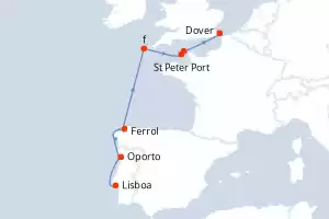 Itinerario : Lisboa, Oporto, Ferrol, f, St Peter Port, Aurigny, Dover