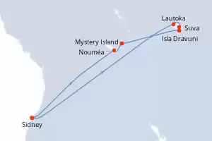 Itinerario : Sidney, Suva, Isla Dravuni, Lautoka, Mystery Island, Nouméa, Sidney