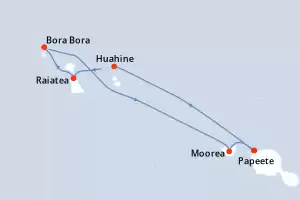 Itinerario : Papeete, Huahine, Raiatea, Motu Mahana, Bora Bora, Moorea, Papeete