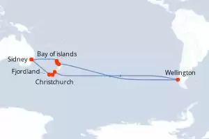 Itinerario : Sidney, Bahía de Islandia, Tauranga, Napier, Picton, Sidney